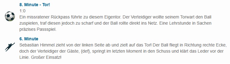 Der Liveticker wird auch noch folgende Spielszenen erhalten: