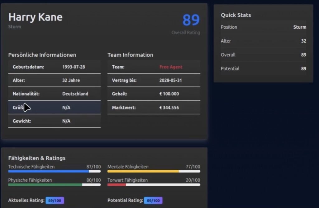 ⚽ Feature-Vorstellung — Spielerstile & Marktwert-/Stärkensystem